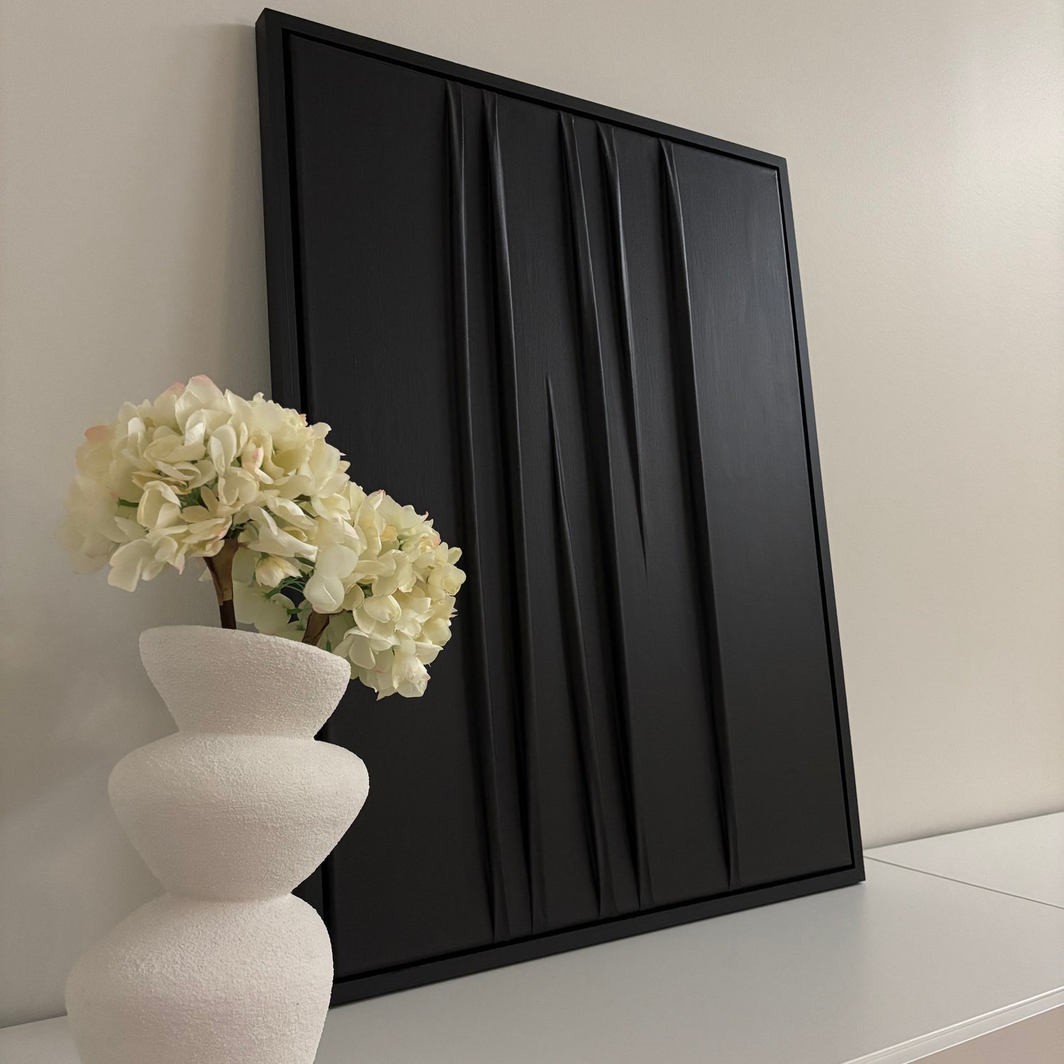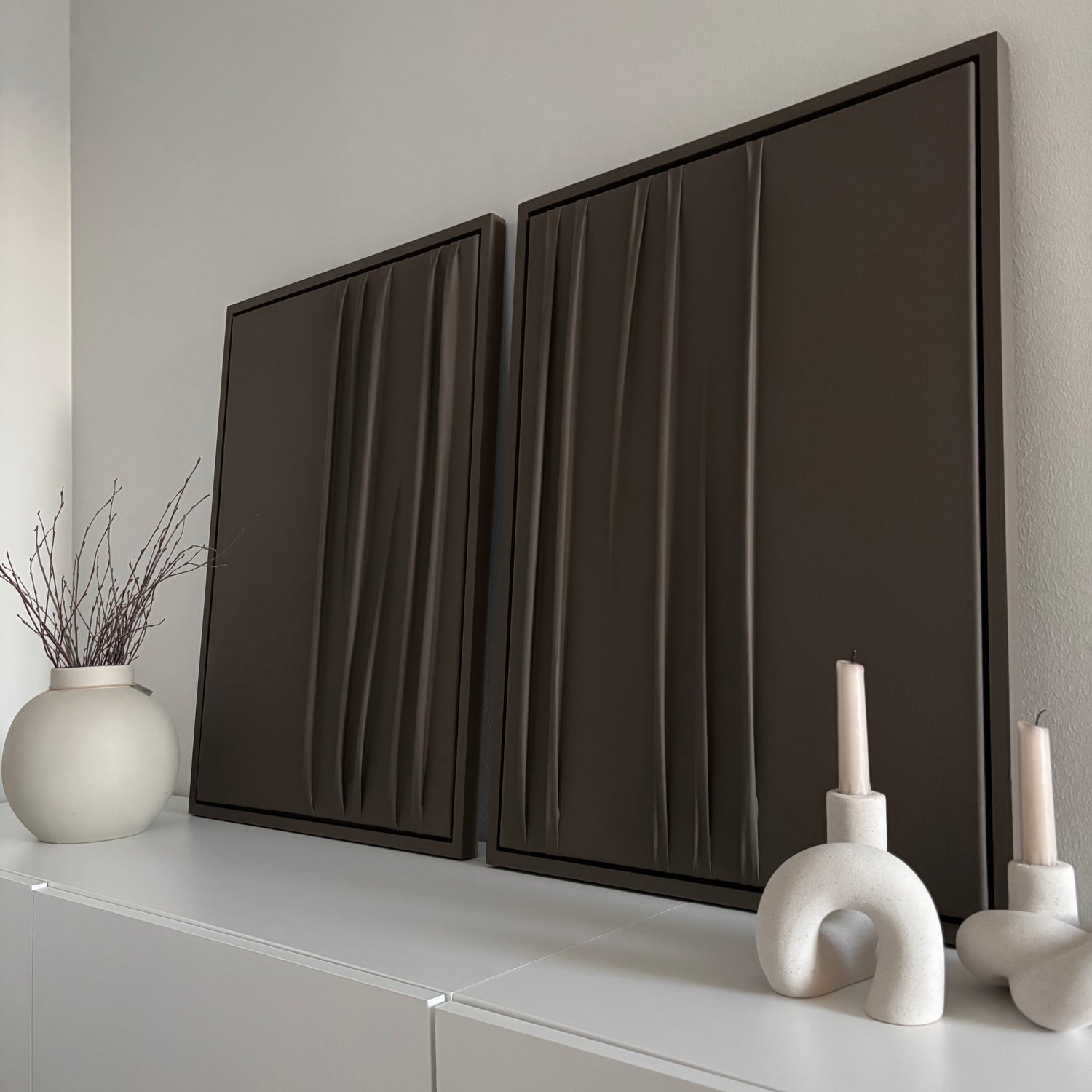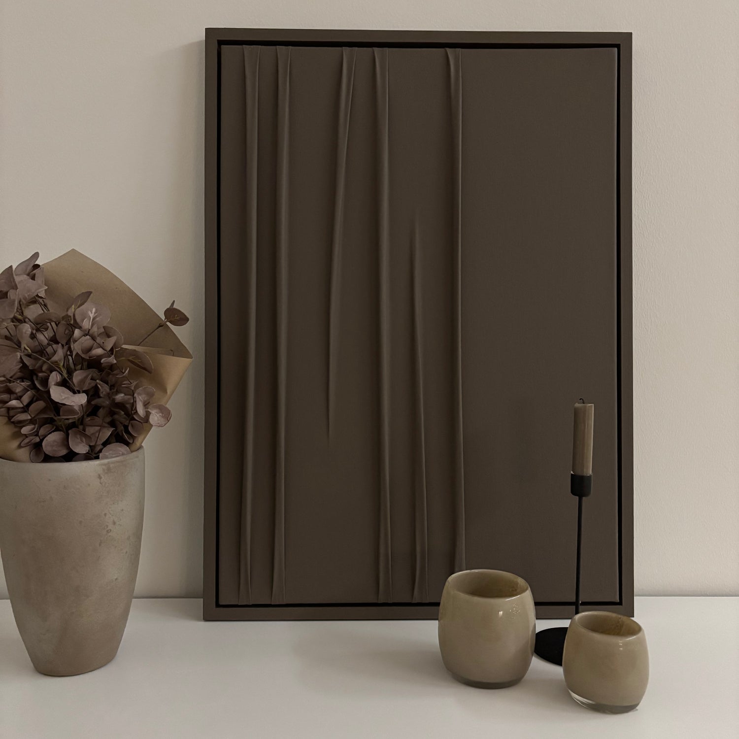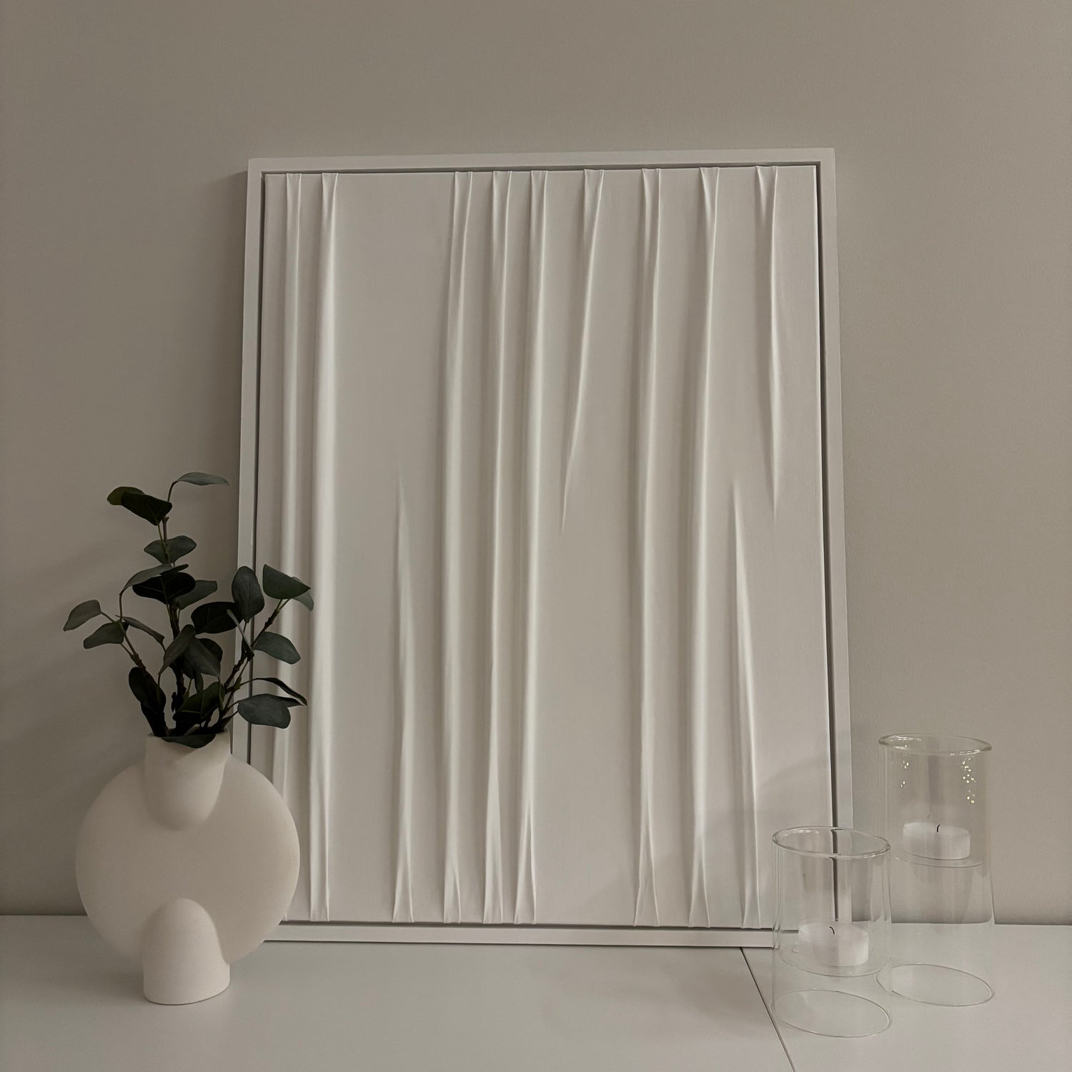 Veckade detaljer längs ena sidan gör den här tavlan till en modern och unik inredningsdetalj.
